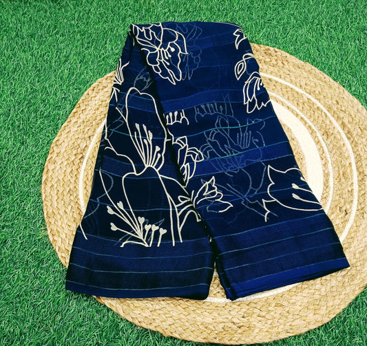 Navy Blue Floral Georgette Saree