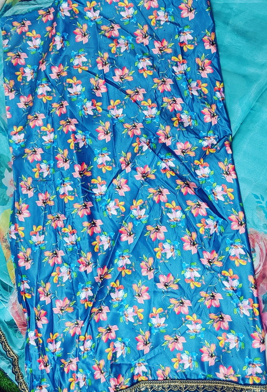 Turquoise Floral space Silk Saree