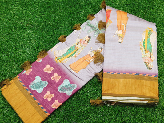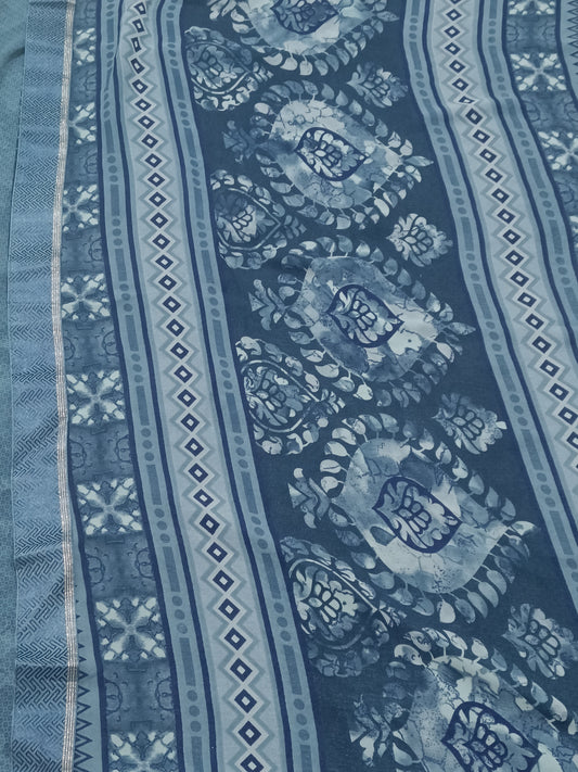 Navy Blue and Yellow Peacock Design Cotton Silk Saree
