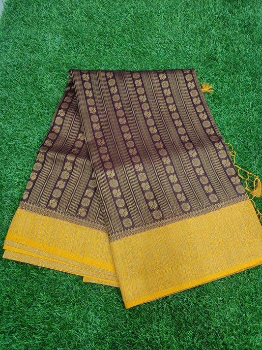 Sea Blue and Brown Semi Kanchi Silk Saree