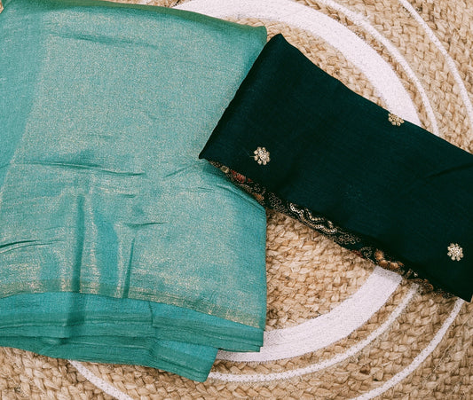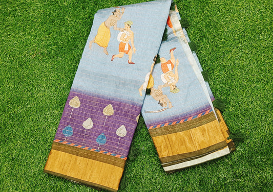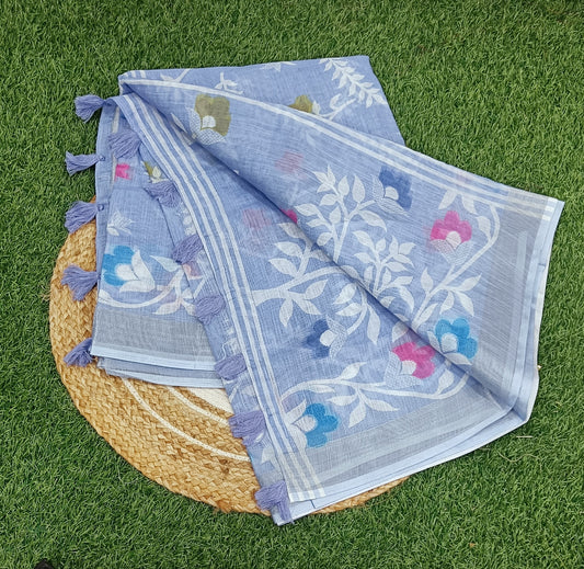 Navy Blue n SkyBlue Khadi Banarasi Saree