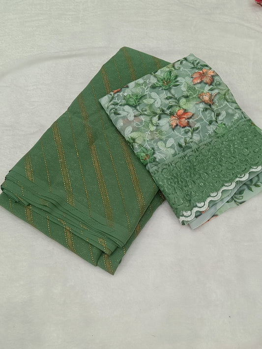 Green Lehariya Georgette saree