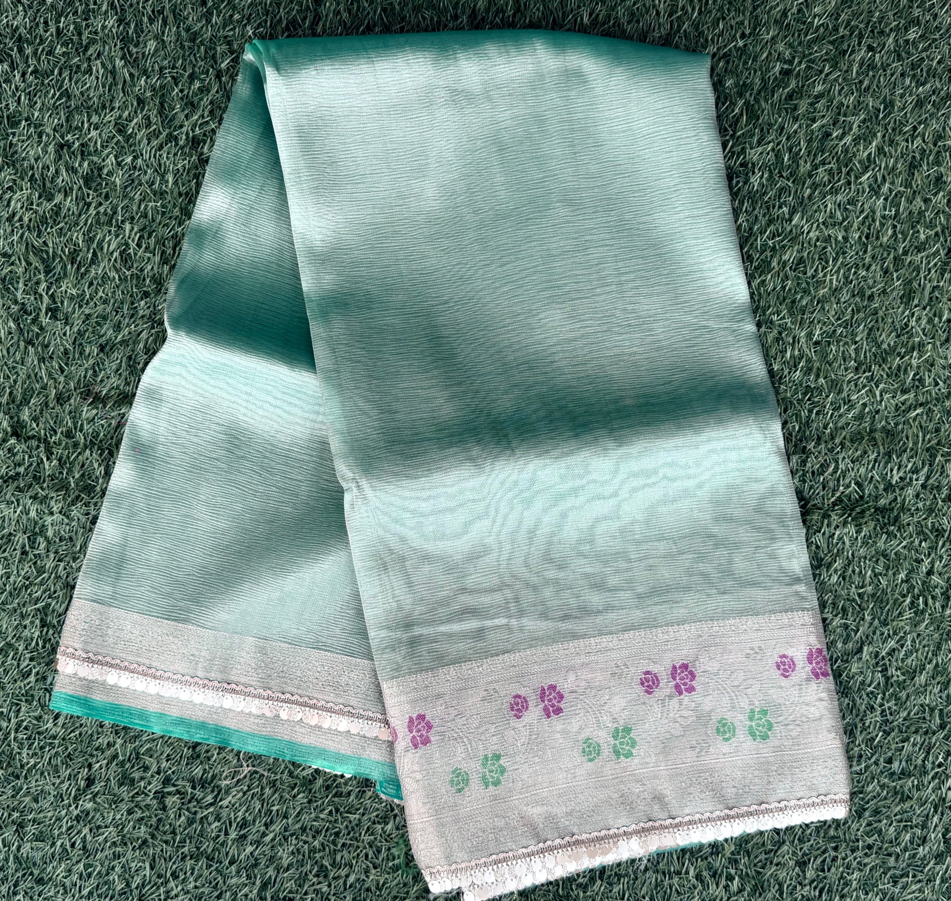 Gistachio Green Tissue Meenakari Kanchi Silk Saree